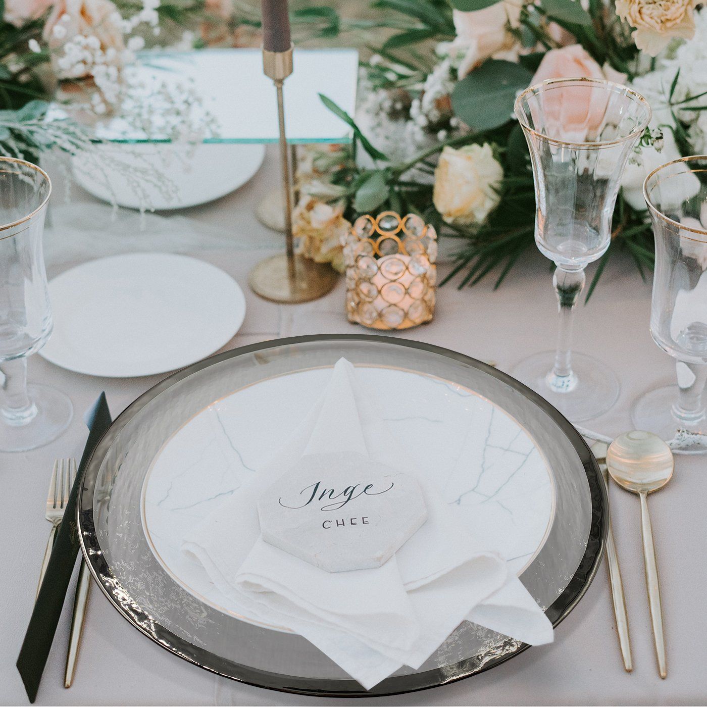 13" Platinum Rim Hammered Glass Charger (12)