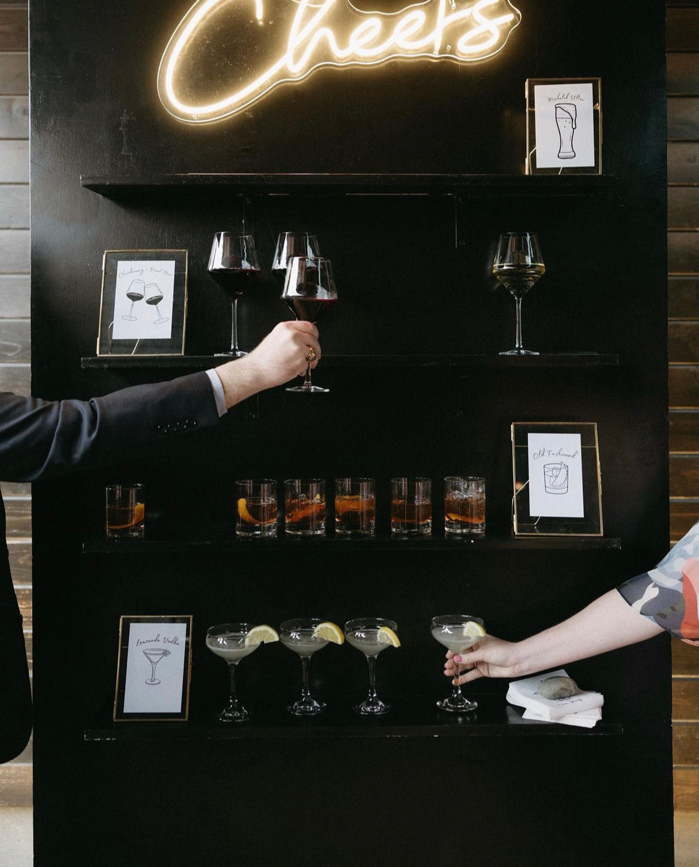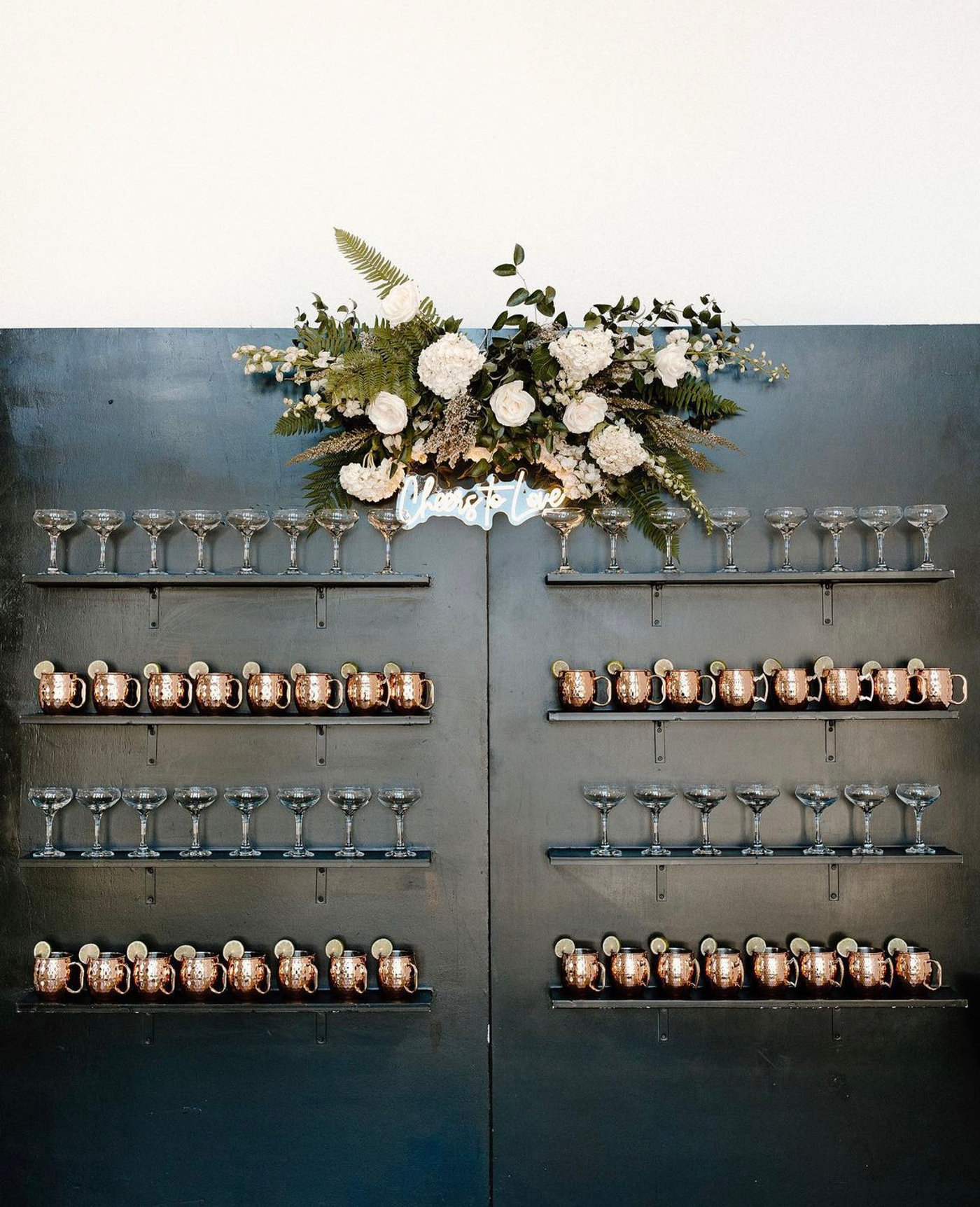Modern and versatile, our Black Display Wall is a stylish way to showcase drinks, favors, photos, or décor accents. With built-in shelving and a sleek black finish, it creates a bold focal point that works beautifully for weddings, parties, and corporate events. Whether used for champagne, desserts, or custom displays, this wall adds both function and sophistication to your event design.