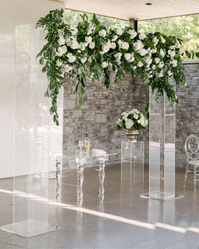 Modern and stunning, our Acrylic Arch creates a sleek backdrop for ceremonies, photo ops, or statement displays. The clear acrylic design allows it to complement any color scheme while adding a contemporary edge. Each column is hollow, making it easy to customize with florals, candles, or decorative accents inside for a personalized touch. This arch must be delivered and set up by our team to ensure stability and a flawless presentation.