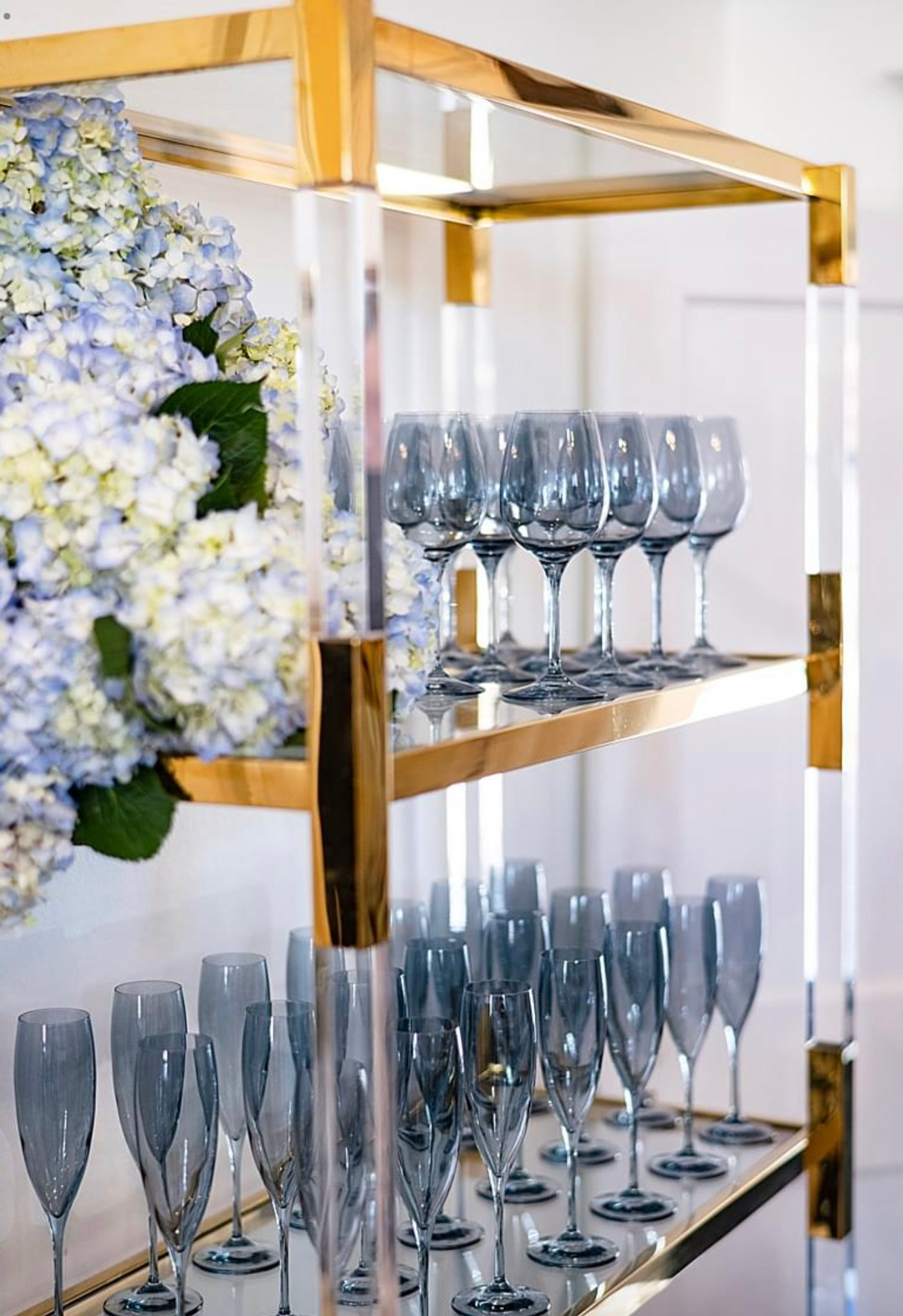 Sleek. Modern. Unforgettable. The Acrylic & Gold Etagere is a true statement piece, designed to shimmer under event lighting. With crystal-clear acrylic framing and luxe gold accents, it creates the perfect blend of glam and minimalism. Five glass shelves provide an airy stage for champagne displays, desserts, florals, or event favors making every detail feel polished and high-end.