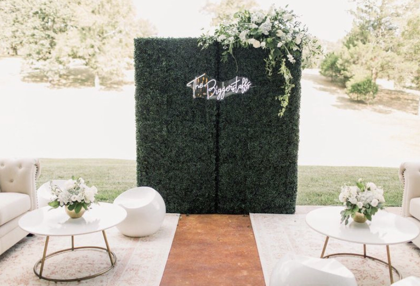 Fresh, lush, and versatile, our Boxwood Hedge Wall is a timeless backdrop option for weddings, parties, and corporate events. Its realistic greenery brings a touch of nature indoors or enhances outdoor spaces, making it the perfect base for florals, signage, or neon lights. Ideal as a ceremony backdrop, photo wall, or statement piece, this hedge wall provides endless styling possibilities.