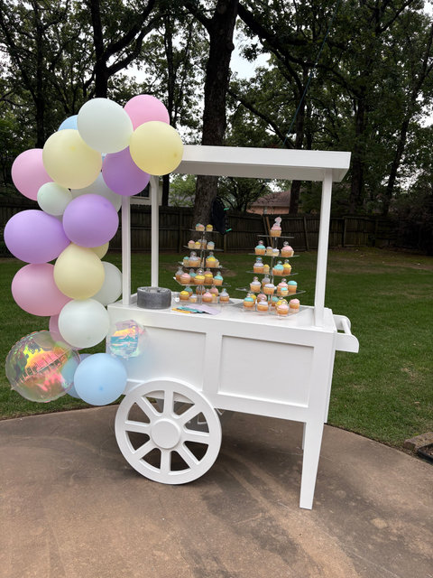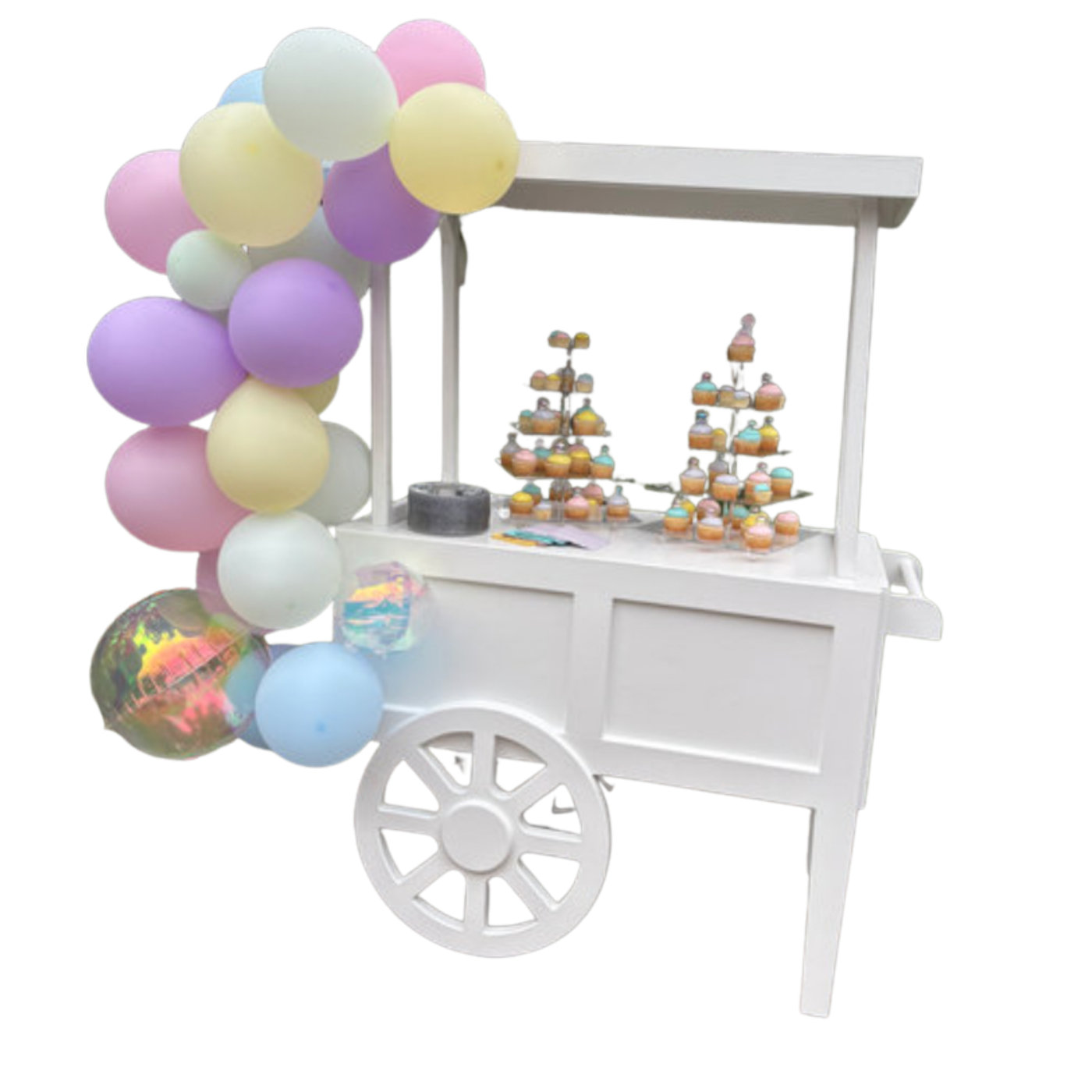 fully collapsable white display cart which makes for easy client pickup. Wheels are stationary.