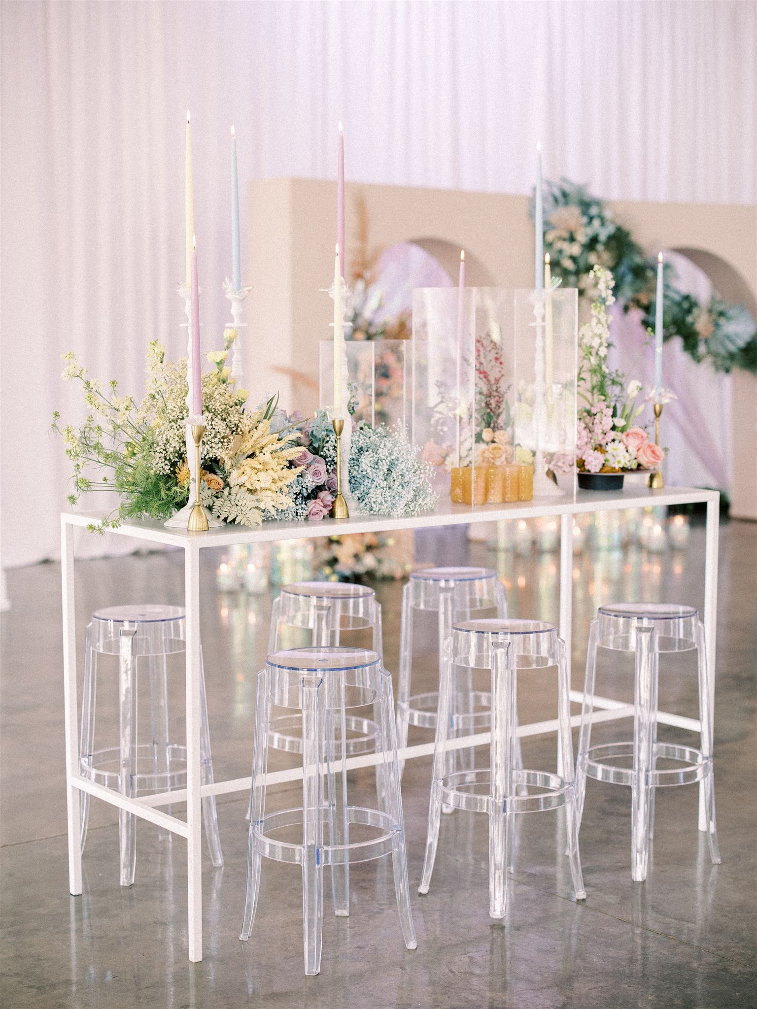 A sleek, modern barstool crafted entirely from clear acrylic. With clean lines, a round seat, and sturdy legs, this piece adds a contemporary, almost invisible presence perfect for chic events that call for modern minimalism without sacrificing function.