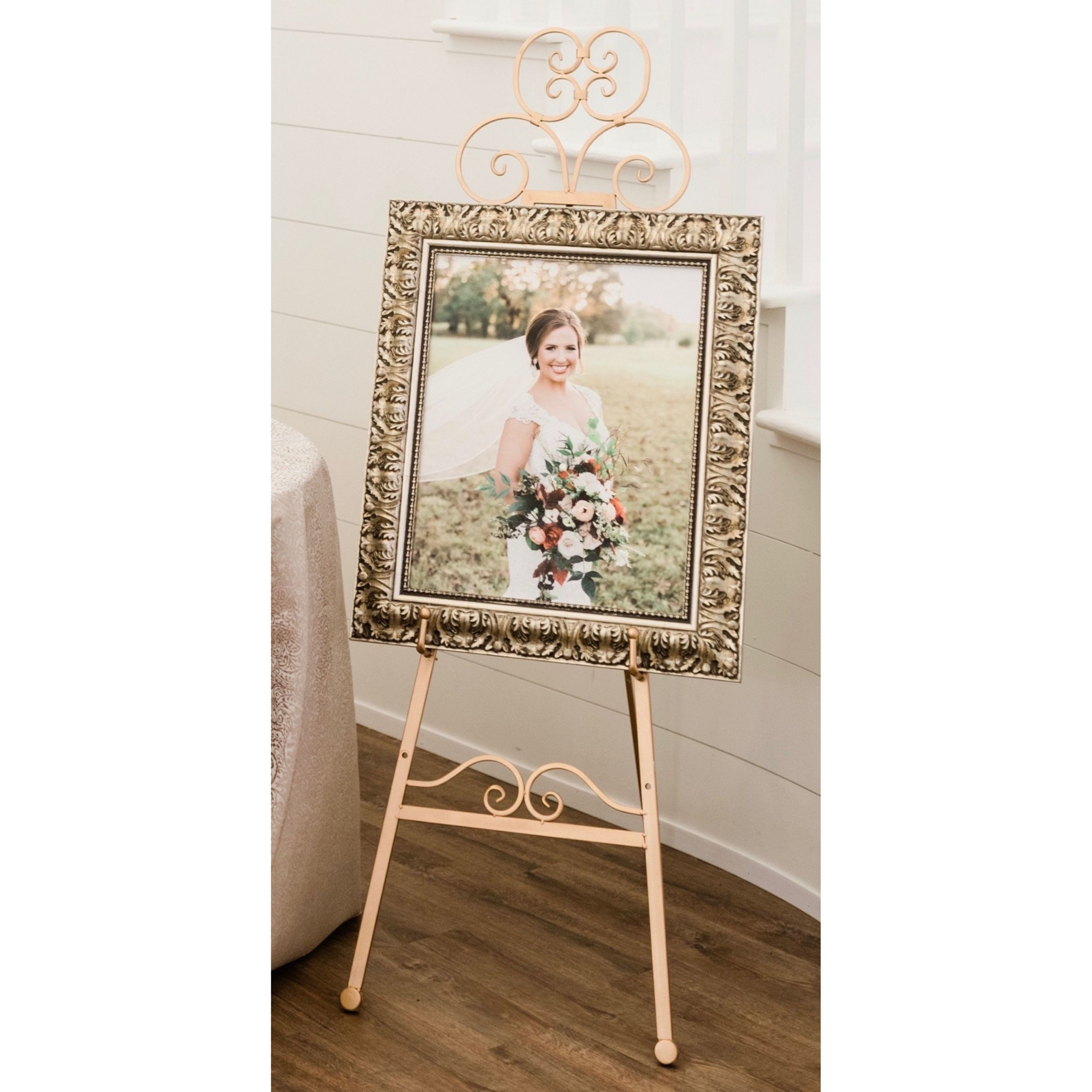 Elegant and eye-catching, our Gold Scroll Easel is the perfect way to display welcome signs, portraits, or seating charts. The soft gold finish and graceful scroll details add a romantic touch, making it especially popular for weddings and upscale celebrations. Sturdy yet decorative, this easel brings both function and beauty to your event design.