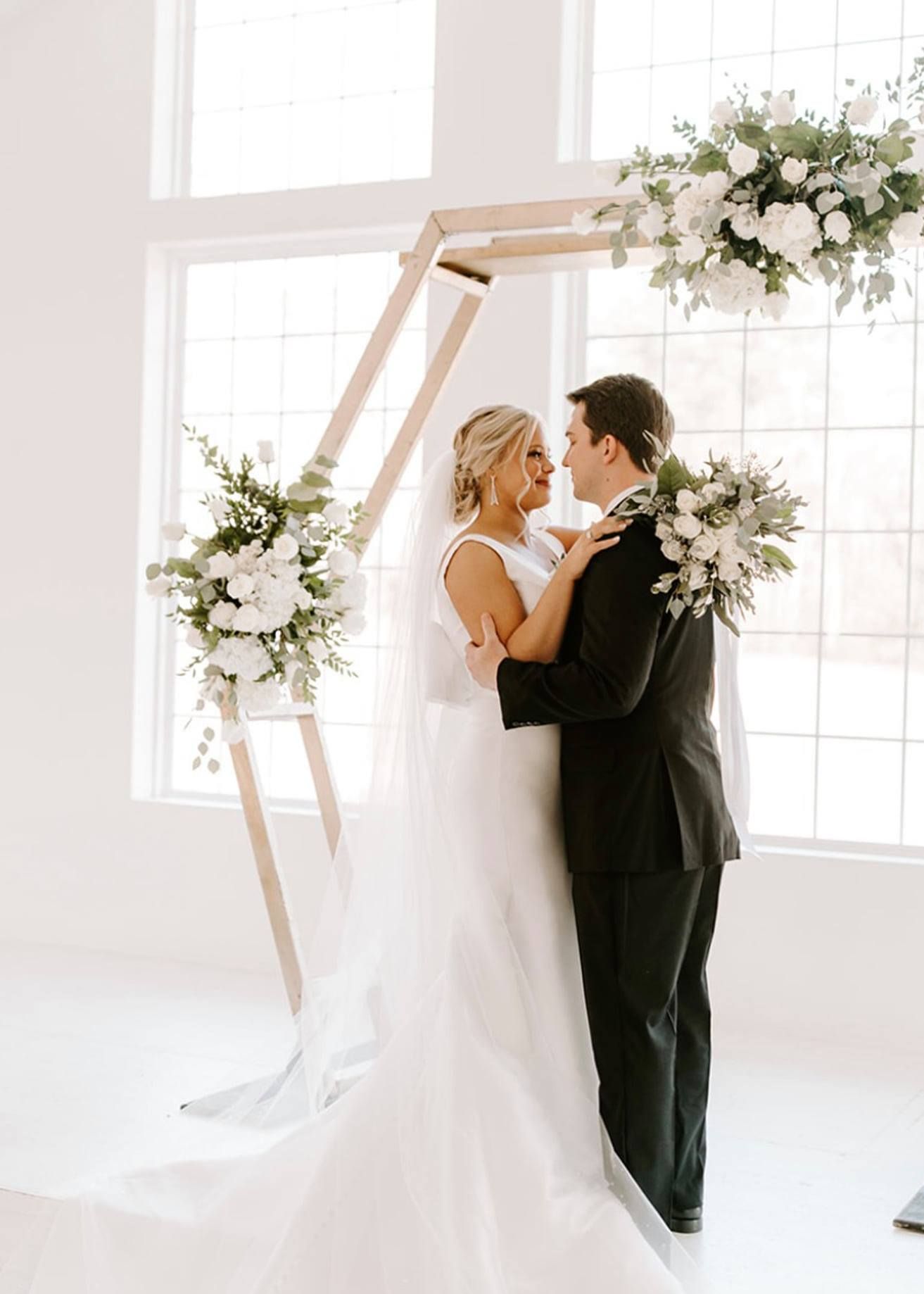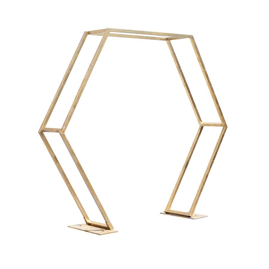 Make a bold statement with our Gold Hexagon Arch, a modern take on a ceremony backdrop. Its sleek geometric shape and metallic gold finish create a striking frame for florals, draping, or minimalist styling. Perfect for weddings, photo shoots, and special events, this unique arch adds a contemporary yet elegant touch to any celebration.