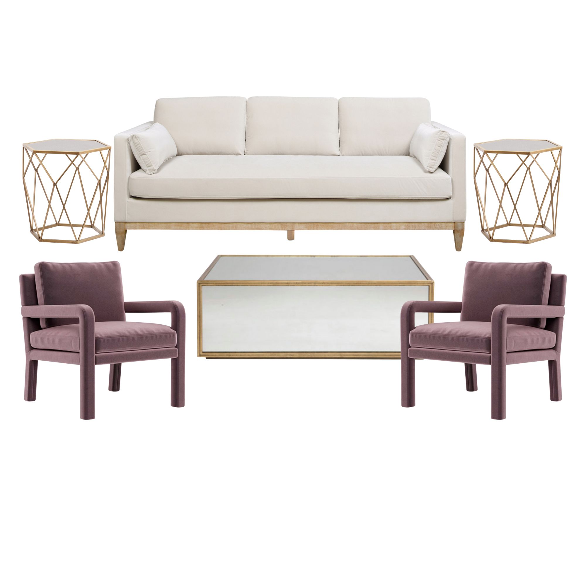 Pillows, rugs, and accessories available to add separately.