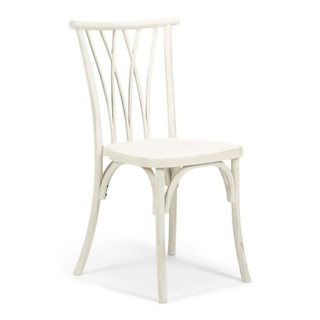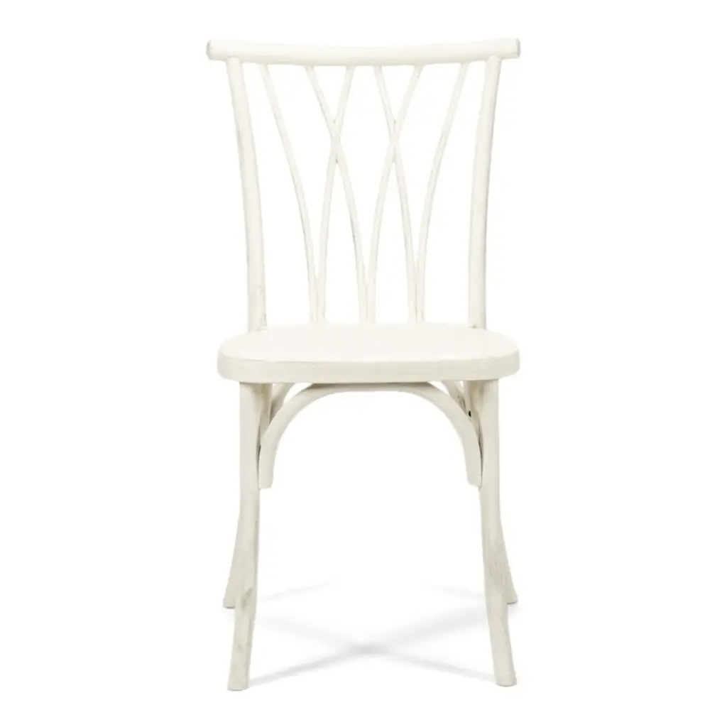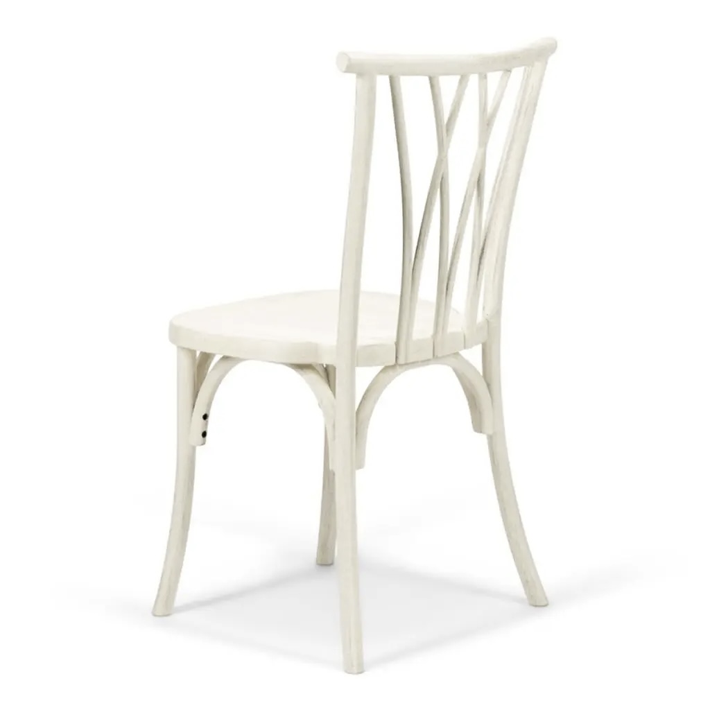 The Willow Chair brings natural elegance with a fresh whitewashed finish and gently curved back detailing. Its airy design adds charm and sophistication, making it a standout seating option for weddings and garden-inspired events.